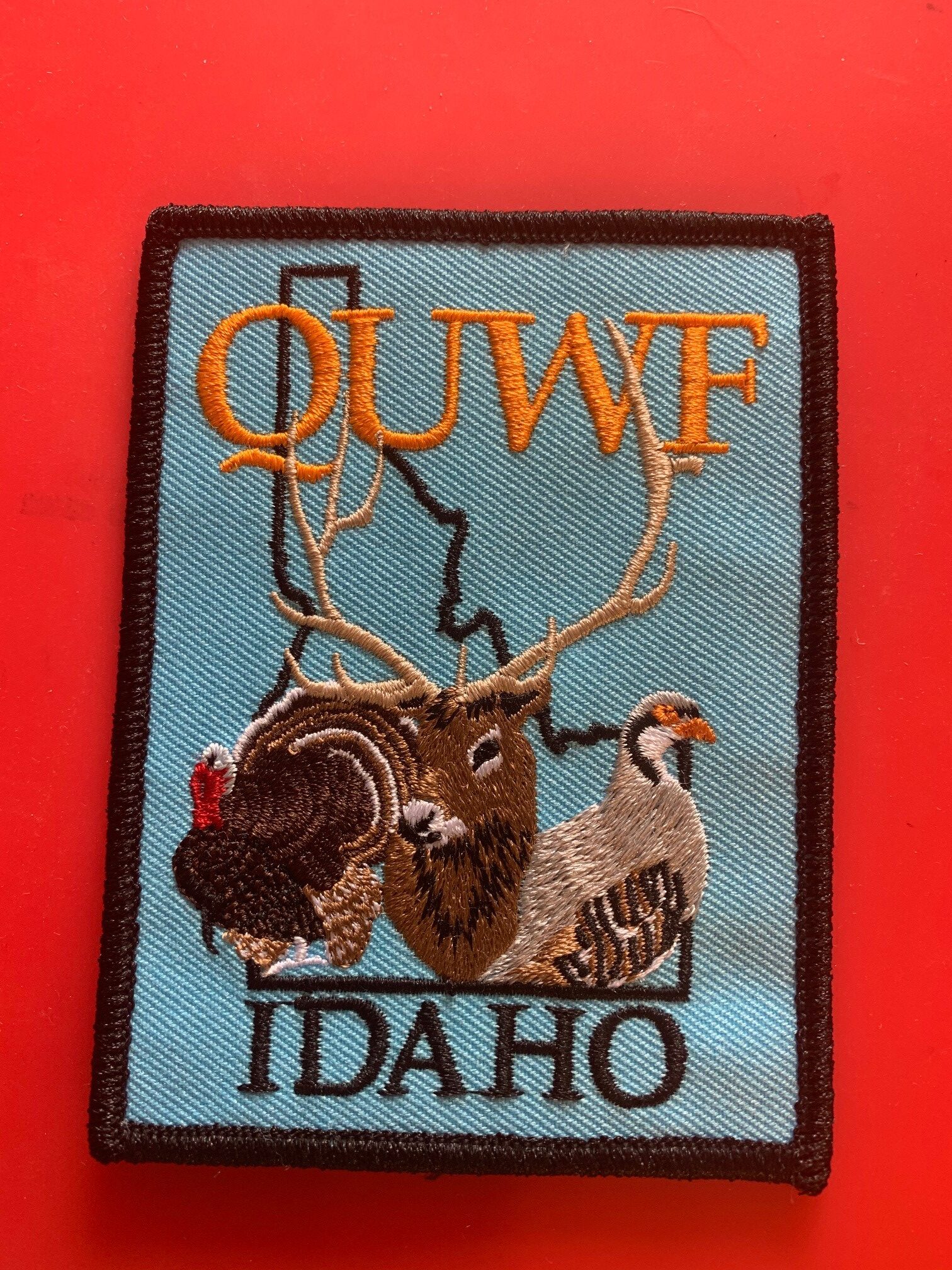 Full color Idaho Members Patch with Elk, turkey and chukar. American Made. Iron on or sew on. $.75 shipping.